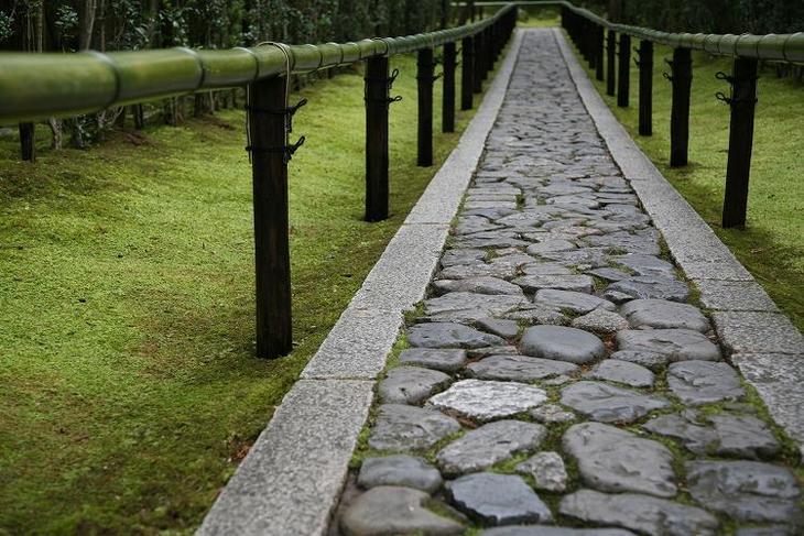 真っすぐに伸びる参道の竹の手摺も新調されています。