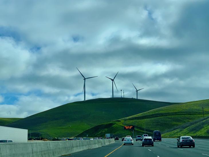 アメリカは1940年最初の風力発電所をノースダコタ州に作った。 1974年から10年間国内は一気に商業用風力発電構想へ進む。 そこでカリフォルニア州は1980年に風力発電事業に税金の控除を始めのたのをきっかけにディアブロ山脈の丘陵地アルタモンパス(Altmont Pass)に大規模風力発電所、『ウィンドファーム(Wind Farm・風の農園)』 ができ始めた。