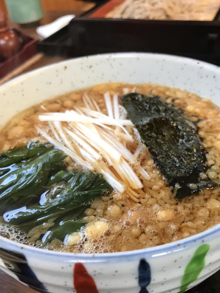 くるみと胡麻ををすり鉢ですって、もりつゆと合わせたまろやかでコクのある汁で頂きます。