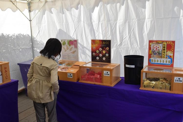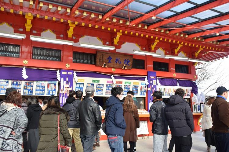 お守りは巫女さんが手渡しでくれるところもありますが、外にも特設販売所があり、7種類のお守りがありました。