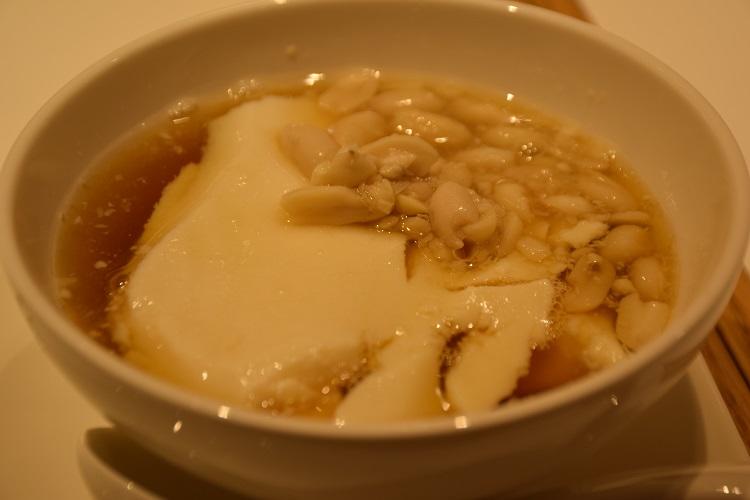 豆花の味をシンプルに楽しめる、ピーナッツ豆花をオーダー。冬瓜糖水の優しい甘みと柔らかいピーナッツが体を温めてくれます。イチゴやフルーツがトッピングされたものは冷たいものしかありませんが、このピーナッツ豆花やモチモチの芋圓の入った芋圓豆花などは温かいものもオーダーできます。黒ゴマを店舗でペースト状になるまで煮込んだ黒ゴマ豆花もおいしそうでした。