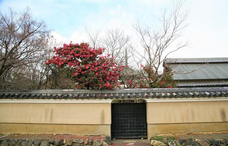土塀沿いでは山茶花も見頃を迎えています。