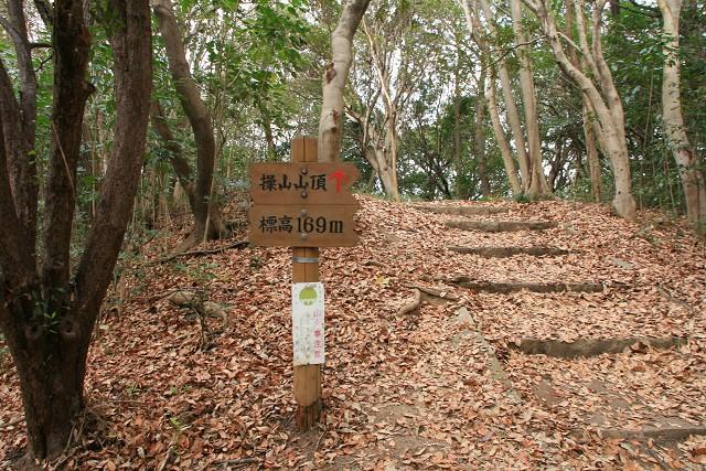 この階段を登りきったら操山の頂上です。山頂の展望は期待できず三角点があるくらいでした。