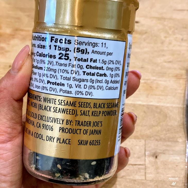 原材料は、White Sesame(白ゴマ)、Black Sesame(黒ゴマ)、Nori(海苔)、Salt(塩)、Kelp Powder(昆布パウダー)の4種類。Natural Flavorをはじめとした添加物は入っていません。Product of Japan と明記されているので、日本製であることは間違いないようです。