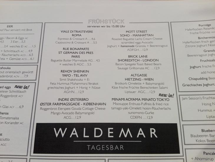 Waldemarの朝食で面白いのが、名前に地名が入っていること。ベーグルが目玉の「マンハッタン」やイングリッシュブレクファスト風の「ロンドン」のほかにも、右下には「南青山港東京」というユニークなものまで。ウィーンでお味噌汁に卵焼きもいいかもしれないですね。