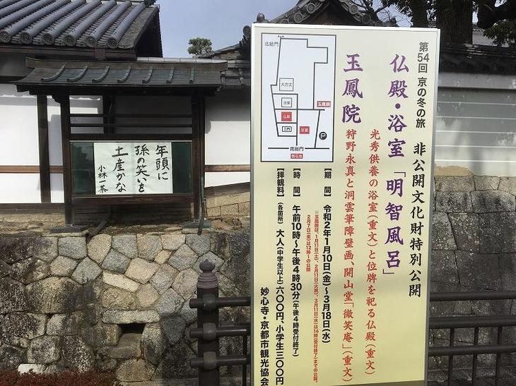今回、京の冬旅で公開されている明智光秀の浴室(重文)は、光秀の叔父にあたる密宗和尚(みっそうおしょう)が光秀の菩提を弔(とむら)うために建立したとされ、通称「明智風呂」と呼ばれています。