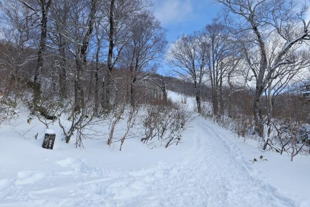ゴンドラを下り、山頂方向へ向かって右手側へ(無雪期と同じ入口)