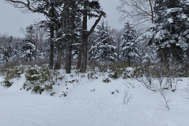 第4クワッドリフト終点からやや下がった位置より、森の中へと入ります。