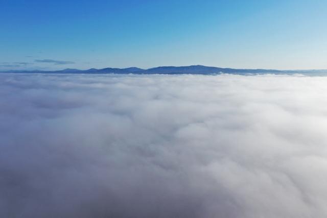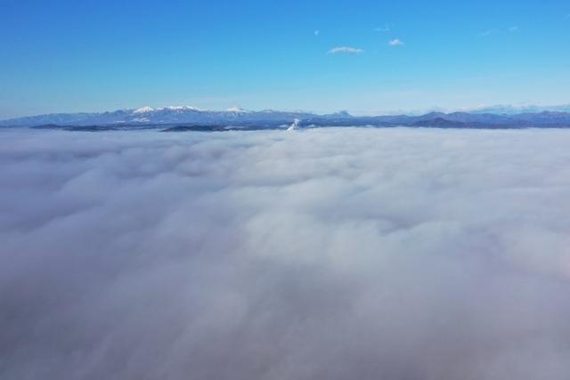 福島県の中央部(中通り一帯)が濃い霧に包まれた日、移動の途中で雲海の空撮を試みました。