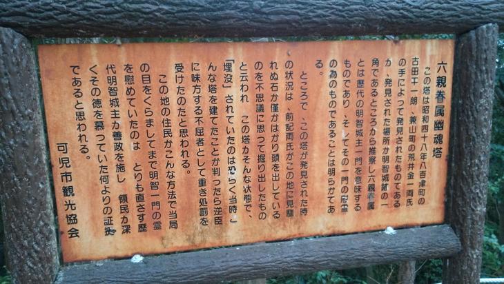 ●明智城址で最も印象に残ったのが、一族の供養塔である「六親眷属幽魂塔」です。明智というとマイナスのイメージが強いですが、この地の住民が明智一門を敬っていた何よりの証拠です。