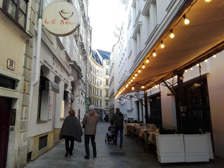 グラーベンから続くおしゃれな小路、Naglergasse(ナーグラーガッセ)を歩いていくと、Le Bol Blancが見えてきます。