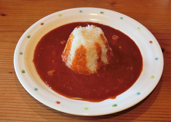 では、赤い富士山カレーもいってみましょう。こちらには笛吹市産ぶどう果汁が入っているんですね。辛いもの大好きなので、辛口のこれ楽しみだったんです。
