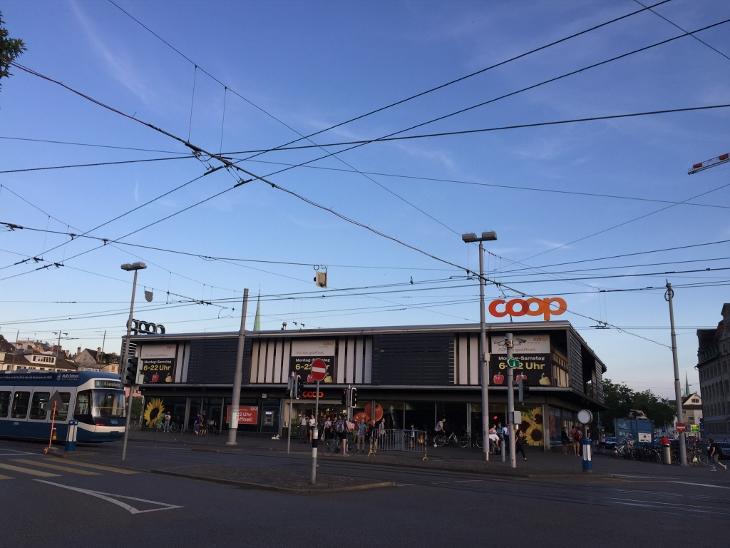 チューリヒ中央駅の地下にはCOOPがありましたが、チューリヒ中央駅を出たところに大きなCOOPがあったので、そちらを利用することが多かったです。みんな考えることは一緒のようで、いつも混雑していました。