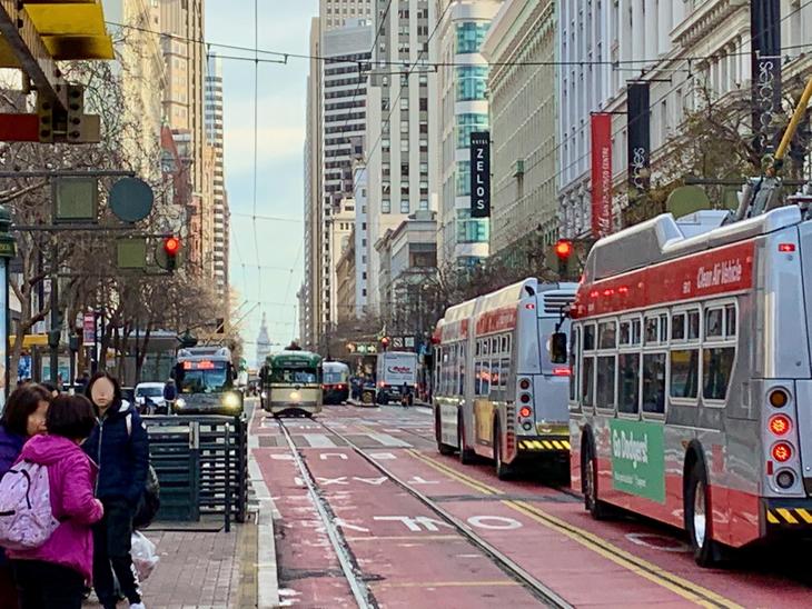 今日からサンフランシスコの目抜き通りマーケット通りは、一般車両通行ができなくなっちゃう。