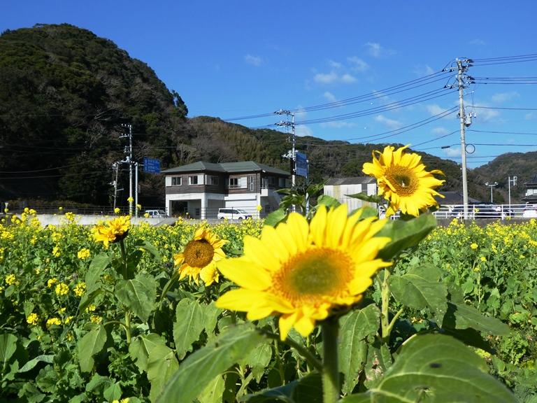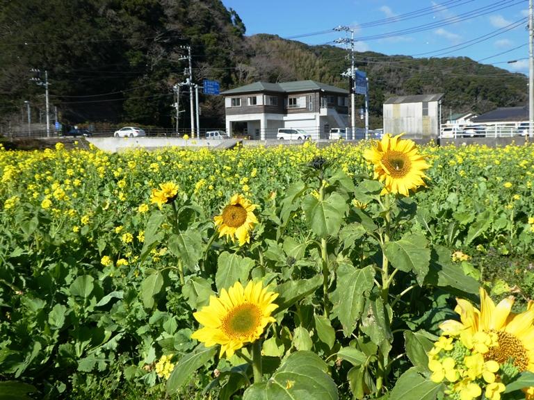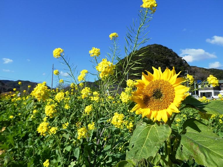 そんな「春の風物詩」菜の花にまじって「夏の花・ヒマワリ」も!
