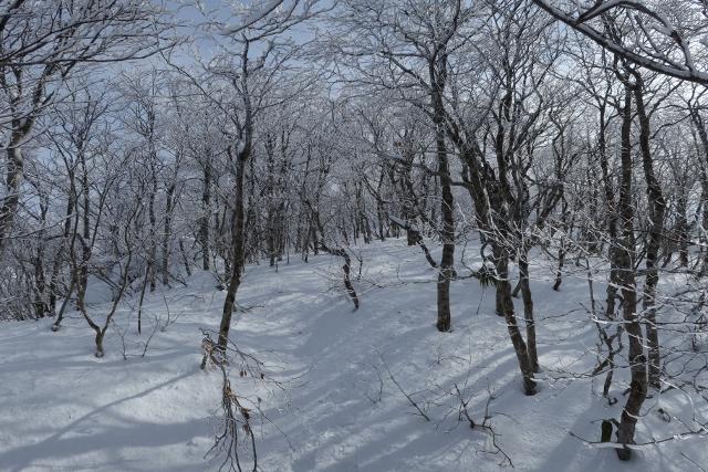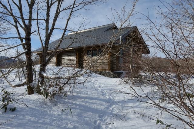 雄子沢登山道から冬道をスノーシューにて進み、まずは雄国休憩舎脇へ。