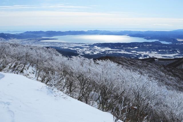 休憩舎前から雄国沼と猫魔ヶ岳方向を望みます。