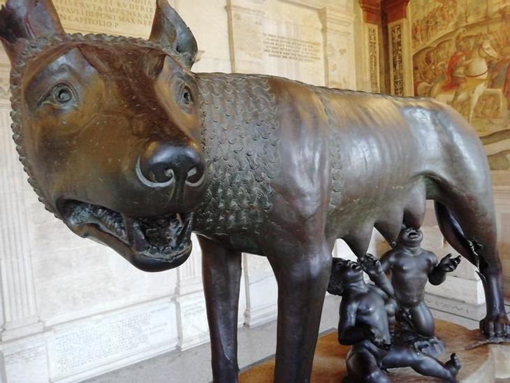 展示されている彫刻の中でもっとも良く知られているのが、紀元前6世紀のブロンズ製の狼像の「カピトリーナの牡狼(伊語:Lupa Capitolina)」で、双子の兄弟のロムルスとレムス(伊語:Romolo e Remo)がその乳を飲んでいる姿がとても印象深いです。ローマ建国神話によればこの双子の兄弟によって紀元前753年4月21日にローマ市を建設されたとされています。その他にも「足の刺を抜く少年(伊語:Spincario)」のブロンズ像もまた繊細で人気があります。