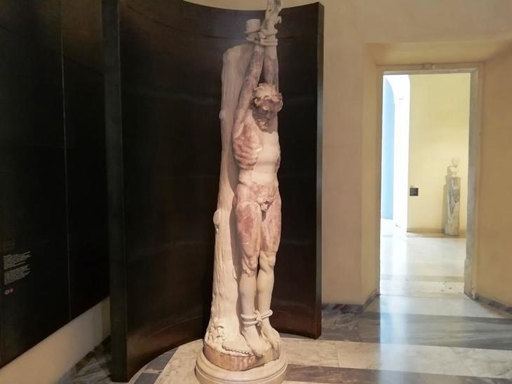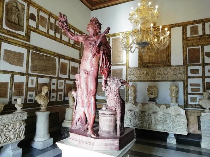 そして、反対側のヌオーヴォ宮では、古代の彫刻がびっしりと圧倒されるほどに並んでいます。特に哲学の間(伊語:Sala dei Filosofi)の哲学者、詩人、政治家の胸像は、見事な作品ぶりに感動すら覚えること間違いないでしょう。また、特派員の自分としては、アメリカ合衆国の小説家であるナサニエル・ホーソン(英語:Nathaniel Hawthorne)が「大理石の牧神像(英語:The Marble Faun)」を書く契機となった赤の大理石の銅像「嬉しそうなサティロス(伊語:Satiro Ridente)」が印象深いものでした。