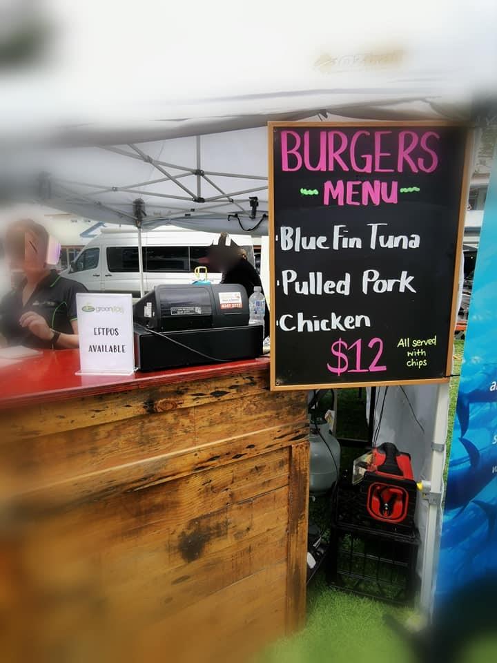 屋台のハンバーガーはマグロのステーキ入り、お肉に比べると割高なマグロをこうしてステーキで食べられるのはこのイベントならでは。