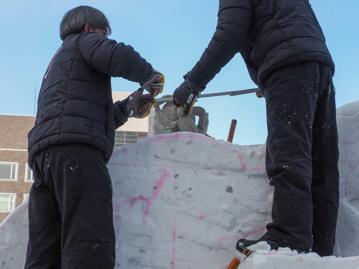 雪像を模型に忠実に掘っていく様子は一見の価値ありです!