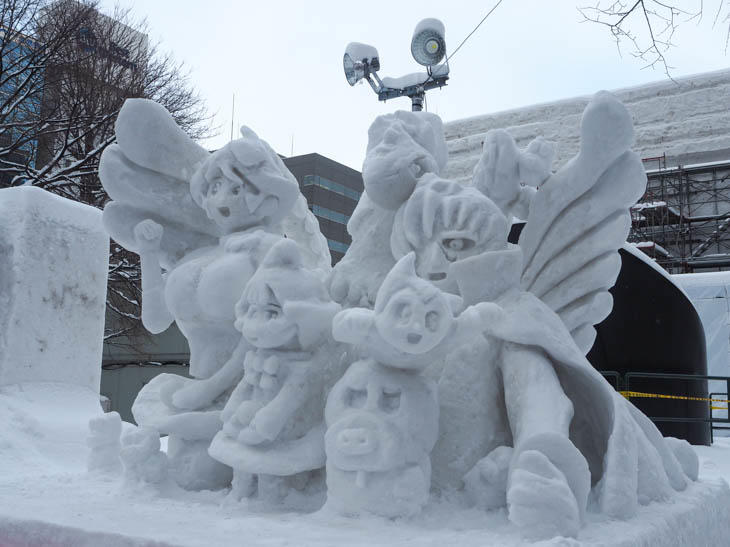 ひと際大きな大雪像「サザエさん一家とウィンタースポーツin SAPPORO」は10丁目。