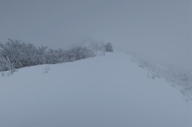 (小雪のため)藪漕ぎを強いられながらようやく稜線へと出ます。