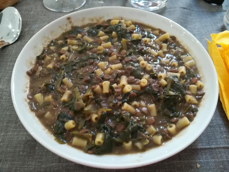 私はレンテイッキエとほうれん草入りのショートパスタを!!!