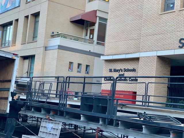 昨日、ここら辺カーニー通り(&コロンバス通り)を通っていたら映画 "The Matrix4" の撮影で素顔のキアヌ・リーブス様を拝見できたかもしれないのですが、今日は映画のセットのような足場を組んでた。