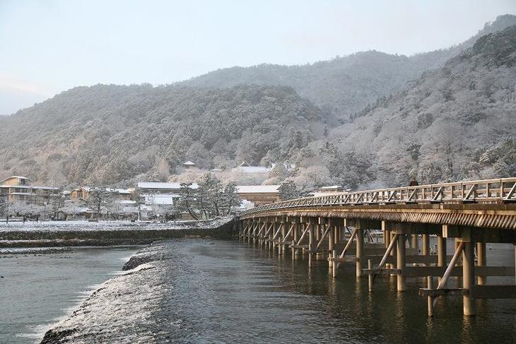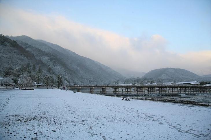 凛と冷え込んだ大気のなかに渡月橋が見えます。