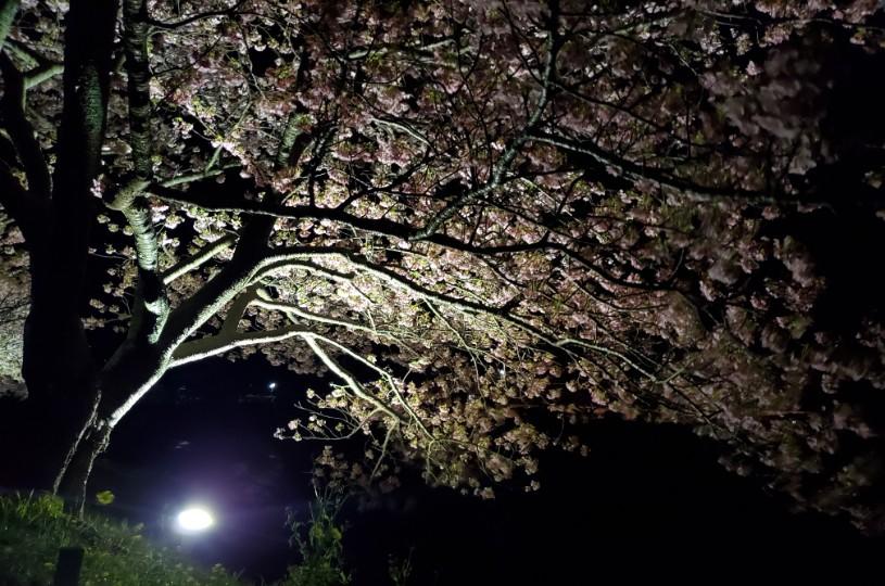 「みなみの桜と菜の花まつり」も残り2週間となりました(2020年2月24日現在)。葉桜になってきたところもありますが、上流の方は見頃になっています。期間中の18:00~21:00には桜のライトアップが行われています。青空のもとで見る桜とはまた違った幻想的な世界に心奪われます。寒さも忘れて見とれてしまいました。ぜひ夜の桜を見にお越しください。