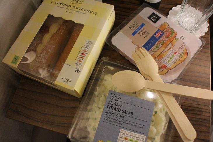 パブで飲んだあと、ホテルの部屋でワインを飲もうと思ってハムと、ポテトサラダ、ドーナツを購入。お惣菜もいろいろあったし寿司もあったと思います。サービスで木のフォークとスプーンがあったのがうれしかったです。
