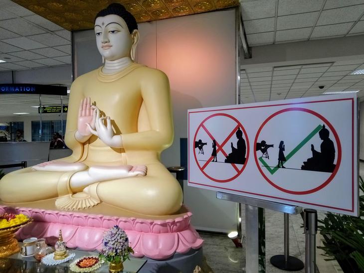 飛行機を降りてイミグレーションに進むと、大きな仏陀が出迎えてくれます。