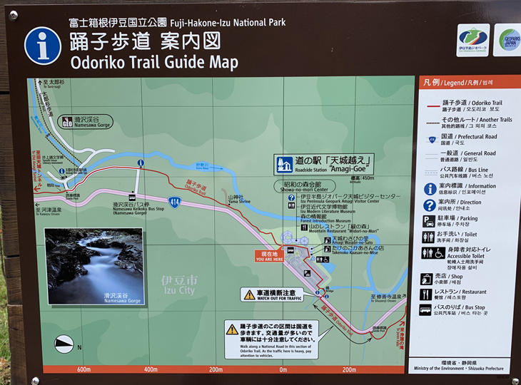 道の駅「天城越え」をスタートし、徒歩約15分の滑沢渓谷を目指します。