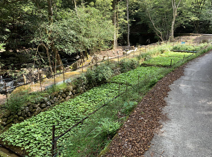 渓谷沿いには、天城の名物でもある「わさび田」を見ることができます。