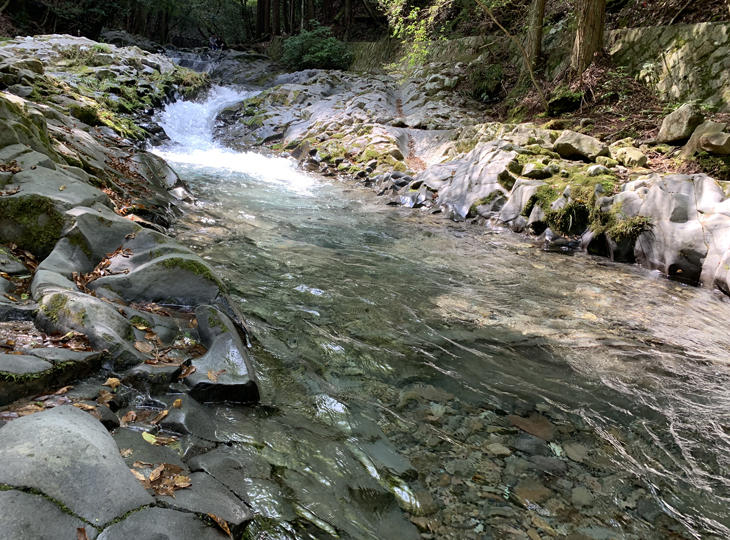 ▲滑沢渓谷 清流が一枚岩を流れる自然美あふれる美しい渓谷