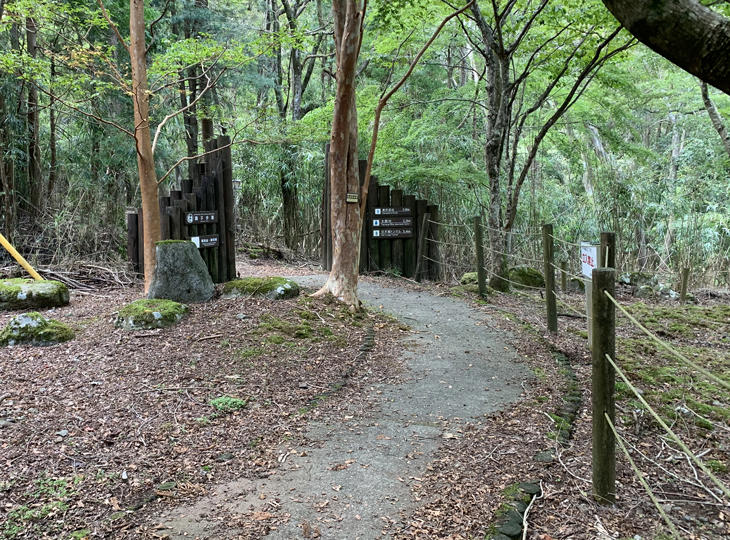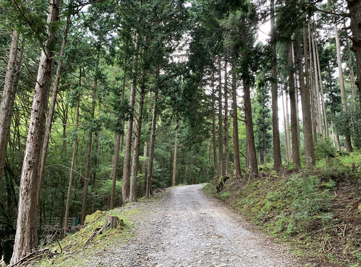 滑沢渓谷を抜けると、杉に囲まれた歩道に出ます。