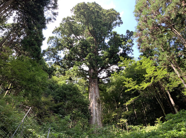 樹齢450年以上、高さ53m、威容を誇るその姿から「森の巨人たち100選」にも選ばれています。