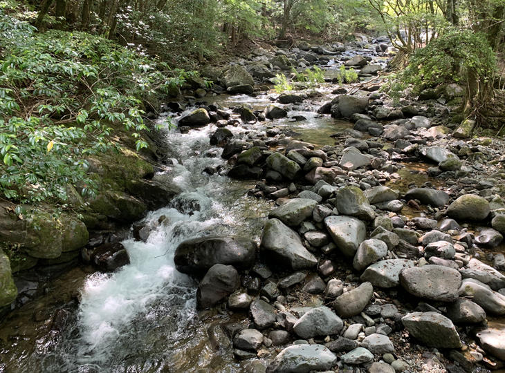 ここからは清流を横に自然林のなかを歩いて行きます。