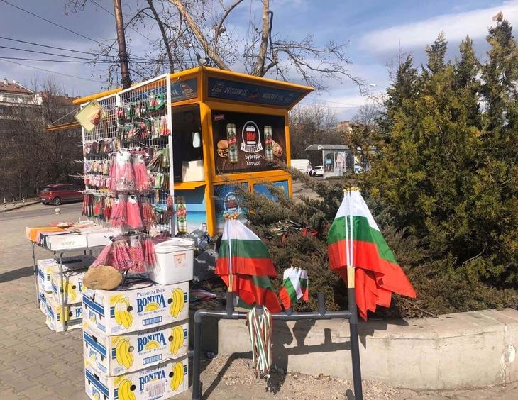 解放記念日前には写真のように道端や商店でブルガリア国旗を売っているところをよく見かけます。