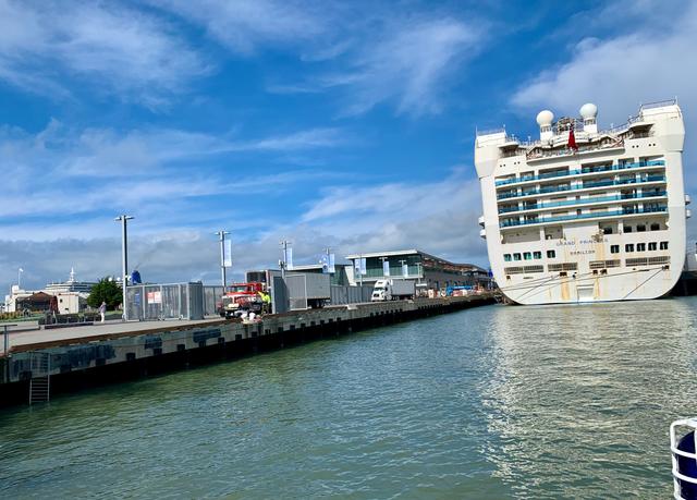 写真はグランドプリンセスではありませんが、荷物を積み込むトラックの小ささを見ると、人や物の輸送能力は飛行機の比ではありませんね。また、大型クルーズ船は、比較的都心から離れた桟橋を利用することが多いのですが、サンフランシスコの桟橋は、徒歩圏内に観光地や繁華街があり、乗船客にとってはたいへん便利な場所にあります。空港からも決して遠くないのでサンフランシスコ港からクルーズを開始する方も多いのです。それが今回は"人の集まってる場所に寄港・帰港すること"になってしまうのです。