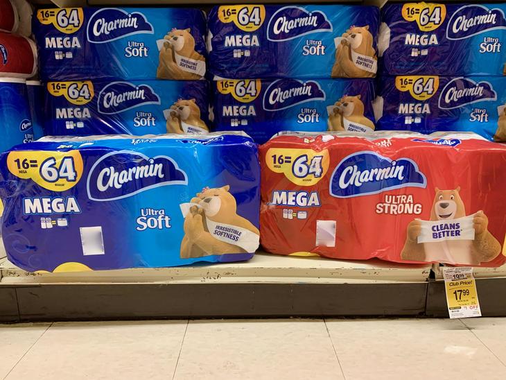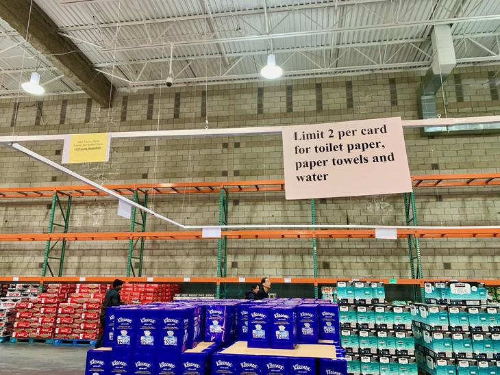 「トイレットペーパー・ペーパータオルそして水は(1枚の)カードにつき2つまで」