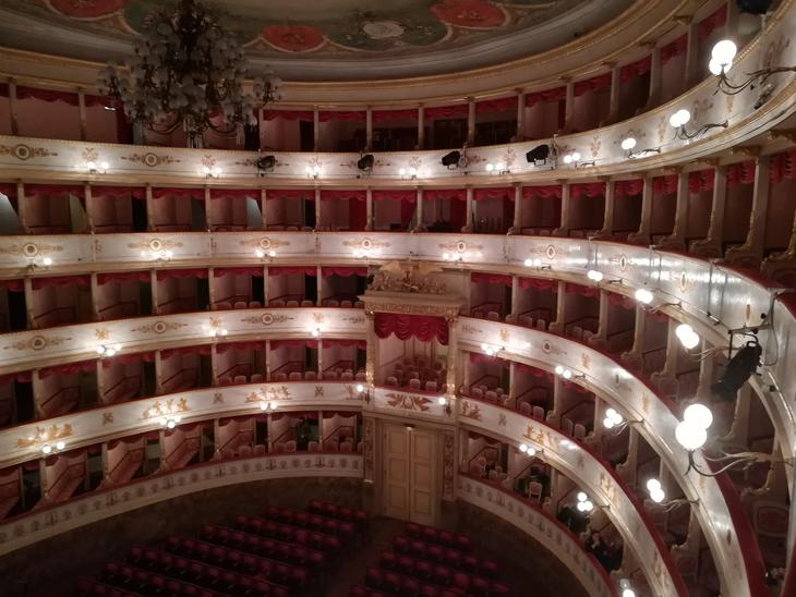そして音楽練習や指揮者との合わせは贅沢にも歌劇場のプラテアを使ってそれぞれ間隔をおき離れてしました……。。