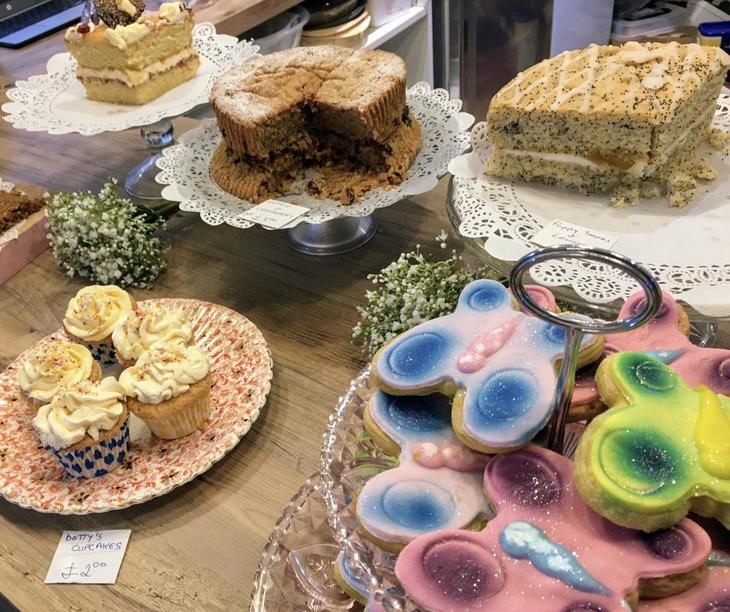 デザートメニューはなく、調理場脇のカウンターに並べられたお菓子から選びます。愛らしい飾りつけのカップケーキやポピーシードとレモンのケーキ、コーヒーとクランベリーのケーキ、ほかにスコーン、アイシングクッキーなどのお菓子はシェフのイングリッドさんがその日すべて1人で焼き上げたホームメードです。