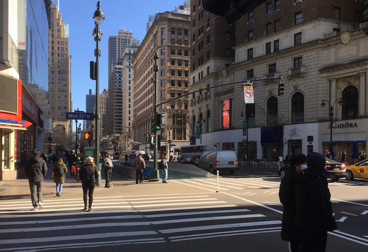 2020年3月16日 いつもは混んでいるヘラルドスクエア付近。人がいなくなったマンハッタン。