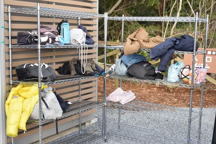 大きな荷物は外のラックに置くようになります。