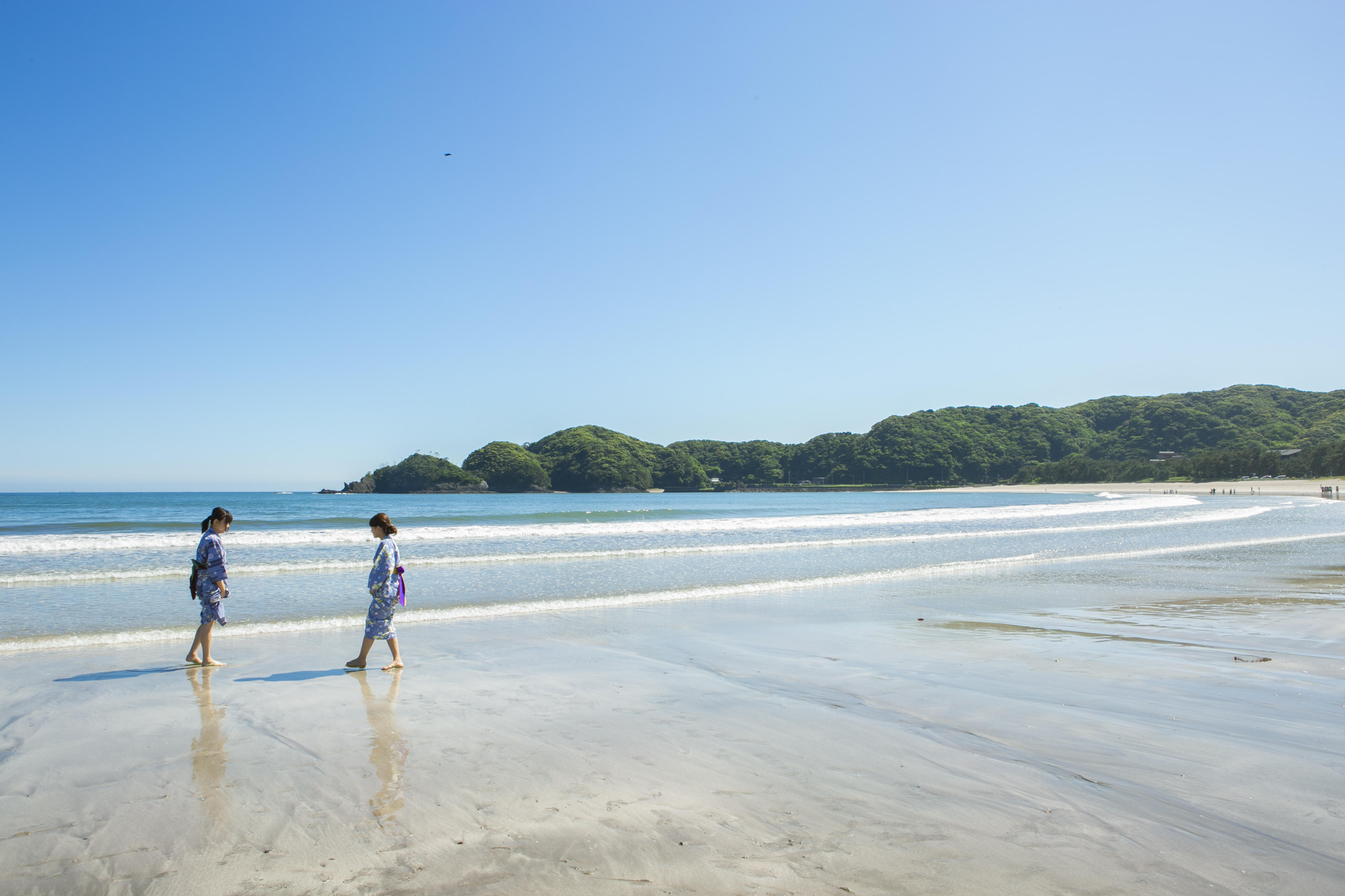 逢ヶ浜(おうのはま)は弓ケ浜の高見山という小高い山を挟んでお隣。徒歩約10分の穴場的な海岸です。