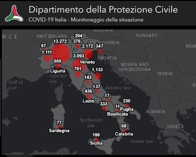 イタリアで新型コロナウイルスの感染者数が多いのは、おもにイタリア北部のロンバルディア州(全体)、エミリア=ロマーニャ州(こちらの5県:モデナ県、パルマ県、ピアチェンツァ県、リミニ県、レッジョ・エミリア県)、マルケ州(1県:ペーザロ=ウルビーノ県)、ピエモンテ州(5県:アレッサンドリア県、アスティ県、ノヴァーラ県、ヴェルヴァーノ・クシオ・オッソーラ県、ヴェルチェッリ県)、ヴェネト州(3県:べネチア県、パドヴァ県、トレヴィーゾ県)です。