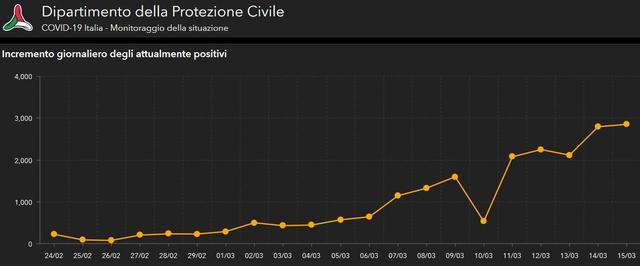 ↑ 急激に感染者が増え始めた2月24日以降の、日ごとの感染者数を示すグラフです。3月7日辺りからまた少しずつ増えています。昨日15日は、1日で感染者数が3000人近く増える今までで最悪の結果となりました。