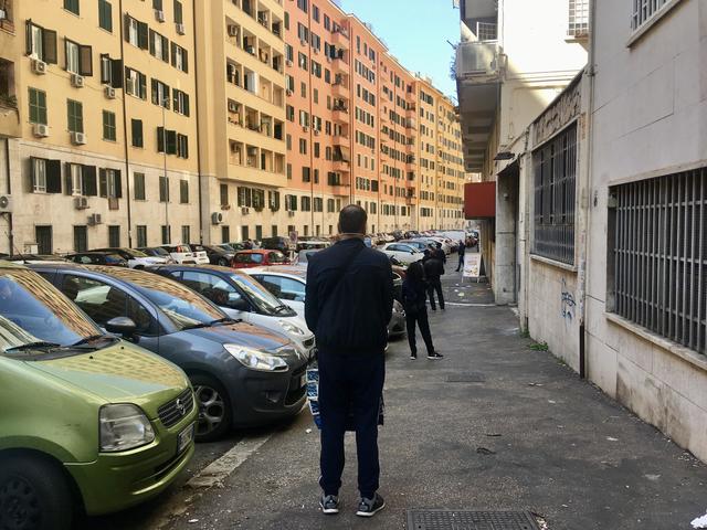 ↑ ローマでも、スーパーなどを除く、あらゆる種類のお店が一時閉店してしまっているので、まるでゴーストタウンのようになっています。こちらは、今日のスーパー・カルフールの様子です。お店の入口は、右奥に見える白い看板の立つところですが、そこへの入店の為の列が出来ています。国の規定では、人と人の距離を最低1mは取ることとありますが、1mどころではなく、皆さん人と人の間を4mくらい空けて列を作っています! 間隔が広過ぎて、お店によっては列が妙に壮大なものになっている時があります。